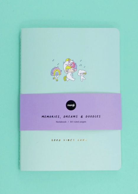 Maak kennis met ons "Good Vibes Gang" Notitieboek, waar dromen en krabbels een thuis vinden! Met 84 gelinieerde pagina’s en A5-formaat biedt dit notitieboek een perfect canvas voor je herinneringen en plannen, met superschattige details.